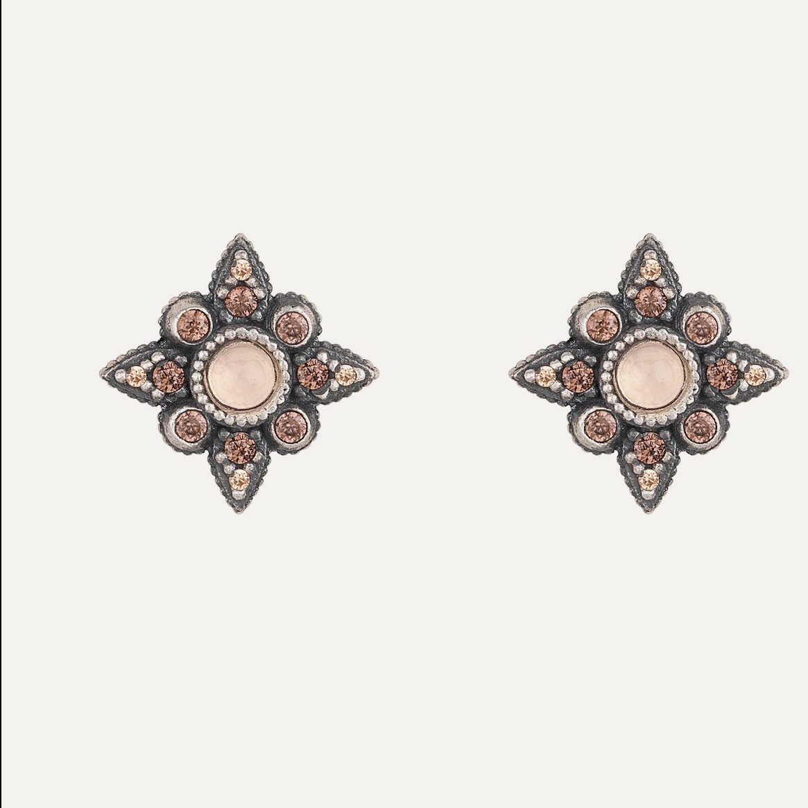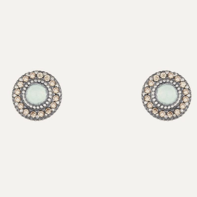 Sunfield Classy est devenue la gamme de produits essentiels que chaque amateur de Sunfield possède dans sa boîte à bijoux. Boucles d’oreilles minimalistes et simples, d’une sophistication intemporelle. En argent sterling 925 avec finition antique, 11 mm de diamètre avec un cabochon central en quartz lisse entouré de zirconias champagne taillés en brillant.
