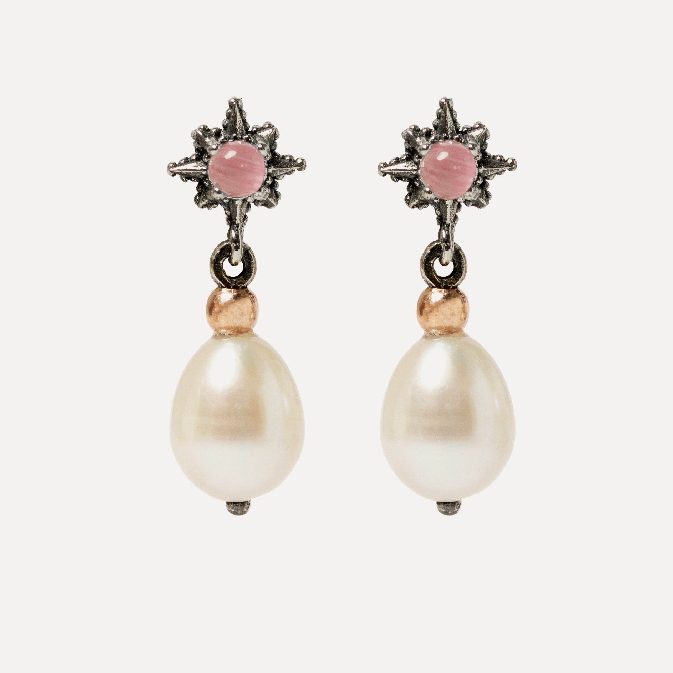 Boucles d’oreilles en argent 925 avec finition antique, perle baroque et zircon.