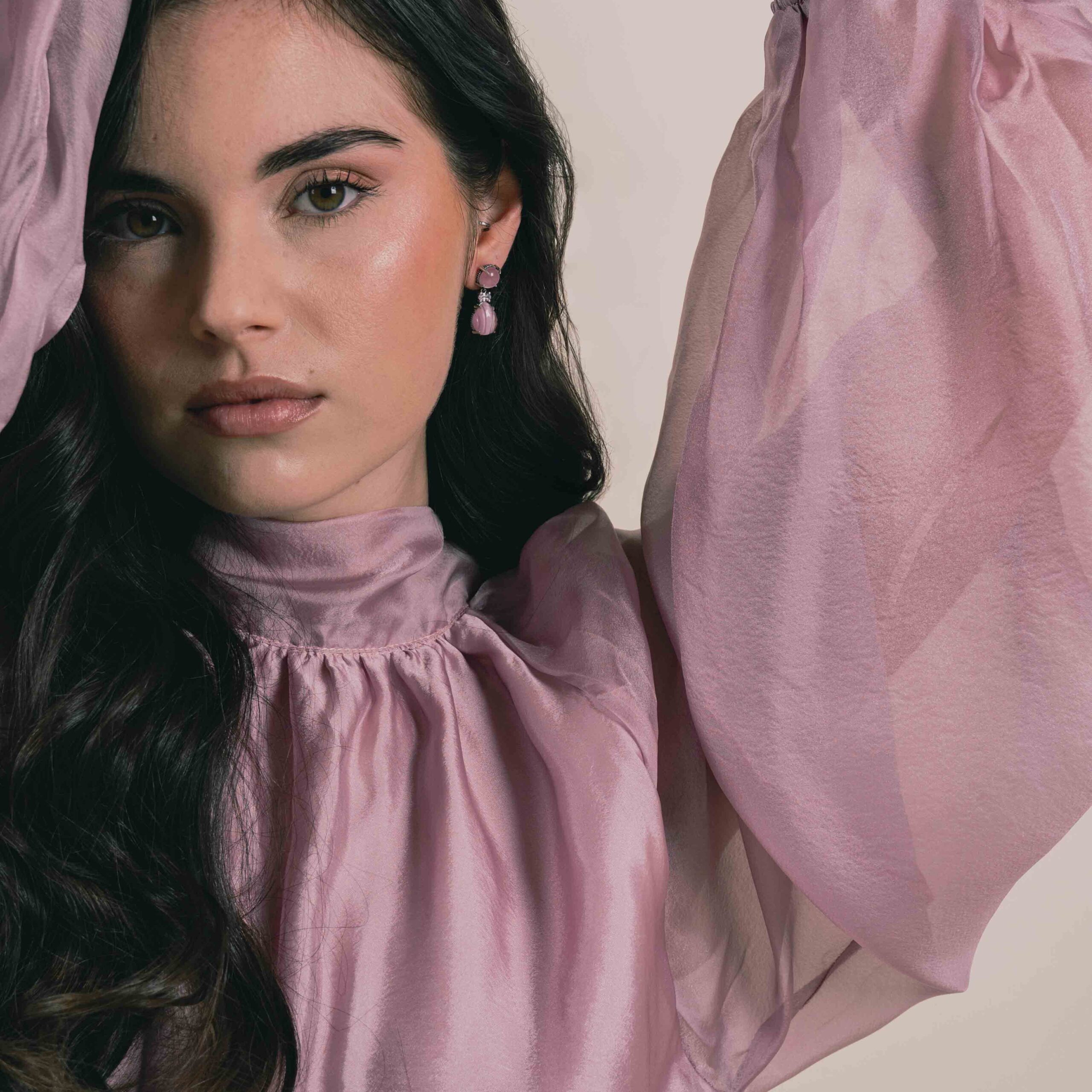 La partie mobile, quant à elle, est une spectaculaire tourmaline rose facettée de 1,5 cm de haut sur 1,2 cm de large qui attirera tous les regards.