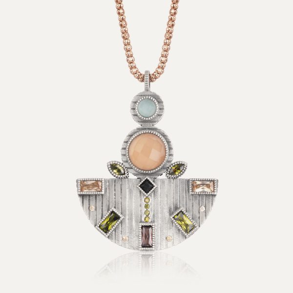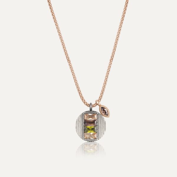 Les boucles d’oreilles Pavlova de Sunfield sont assorties aux pendentifs et bracelets du même nom. Ils sont en argent 925 avec une finition antique et mesurent 23 mm de long. Au sommet se trouve un cabochon de quartz rose facetté de 5 mm, auquel est suspendue une médaille en argent avec des zircons de péridot de couleur champagne, brune et de taille baguette.