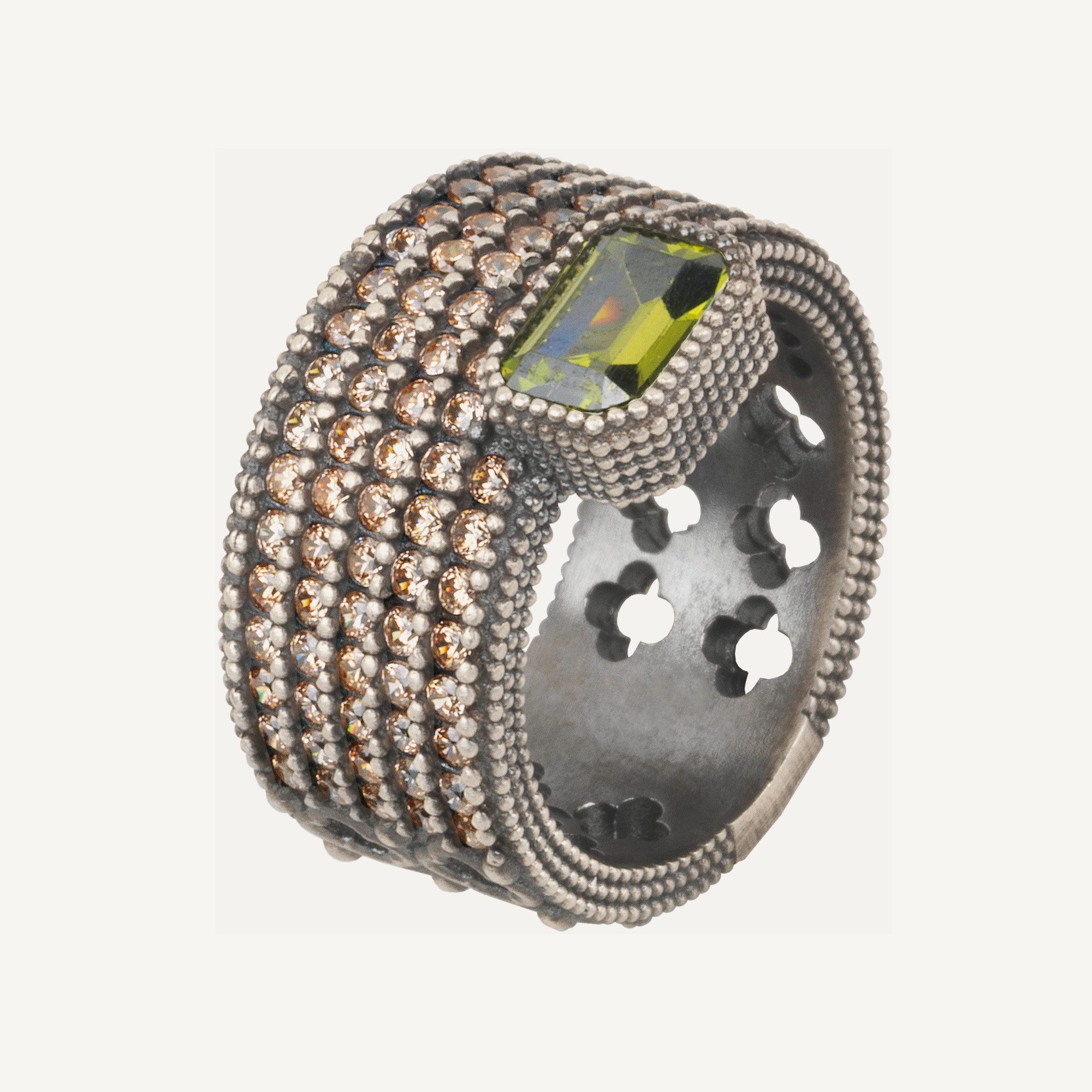 Les bracelets Alicia ont le caractère unique de Sunfield, des pièces avec du design et de la personnalité, idéales à porter seules ou avec d’autres bracelets de notre marque. Les pièces centrales sont en argent sterling 925 avec une finition antique et en argent plaqué or rose 24kt et combinent un zircon péridot de taille émeraude et un zircon péridot de taille brillante. Le reste du bracelet est composé de perles de verre, de disques en caoutchouc et d’hématite. Il s’ajuste facilement à toutes les tailles de poignet.