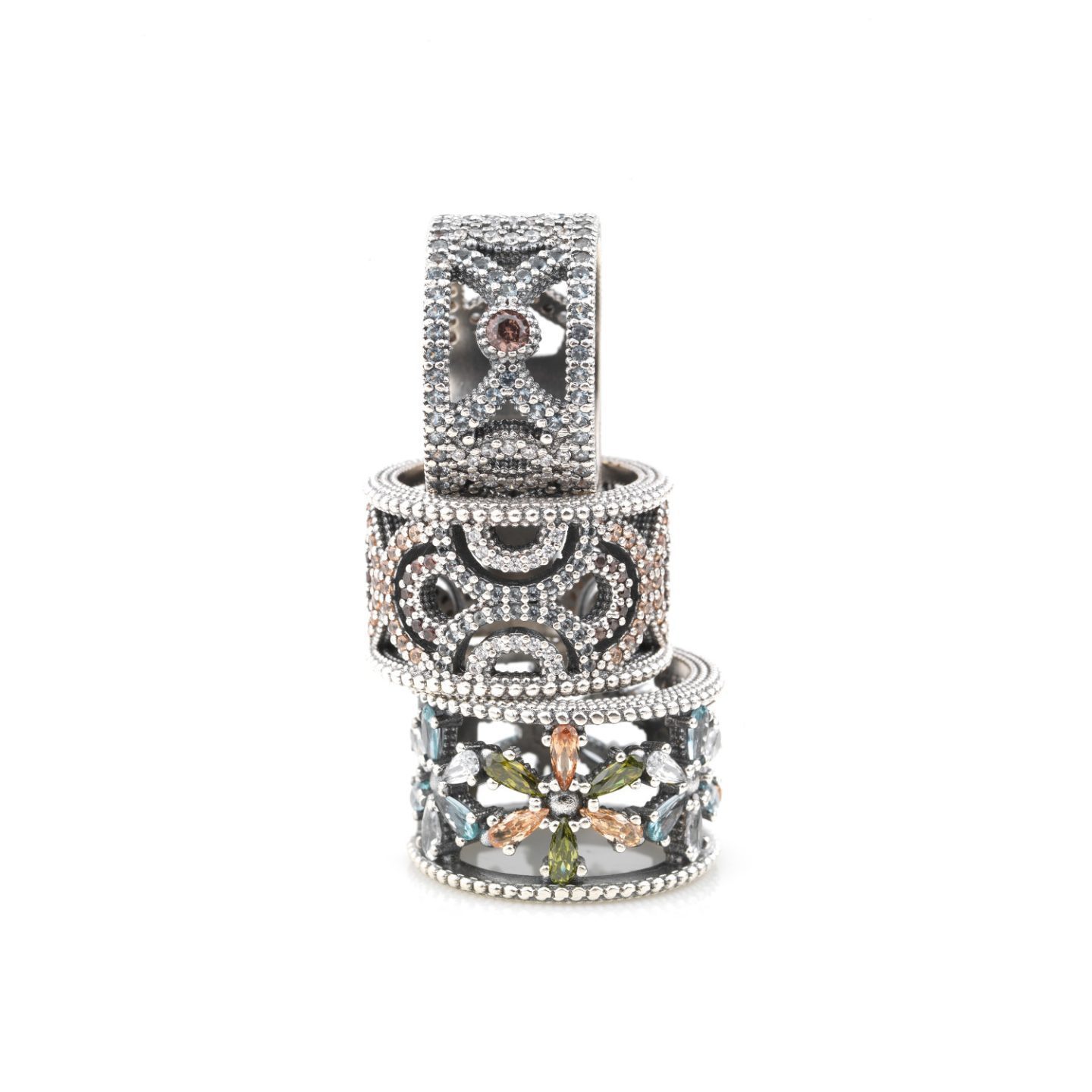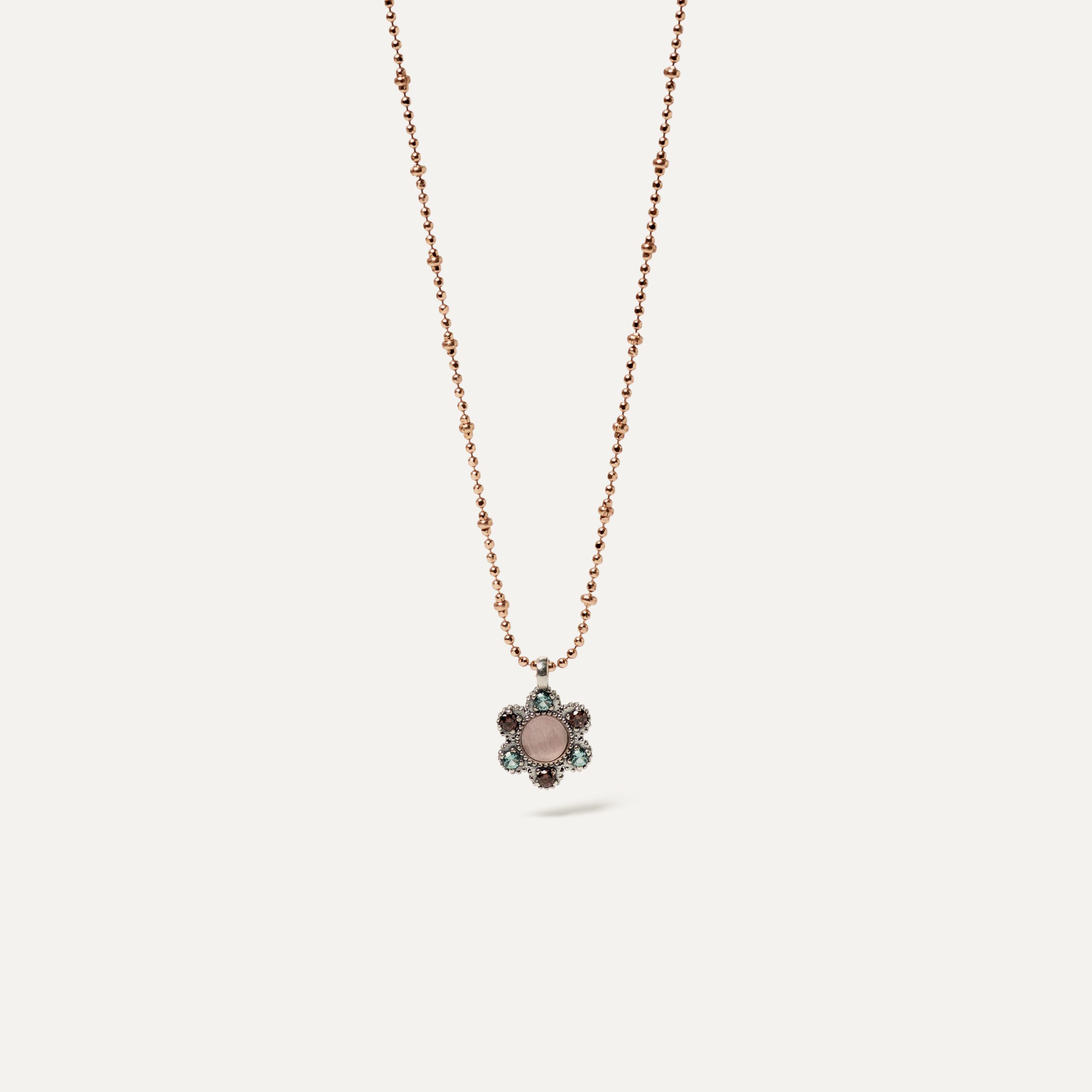 – Pierre : quartz rose et zircon vert menthe et brun