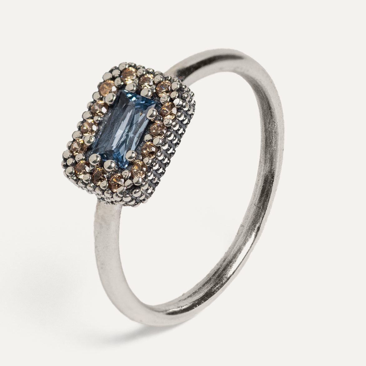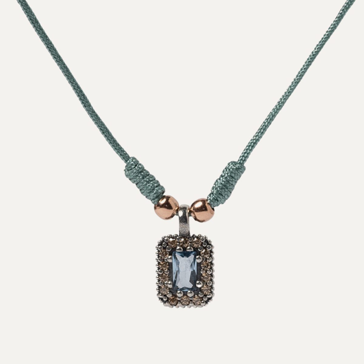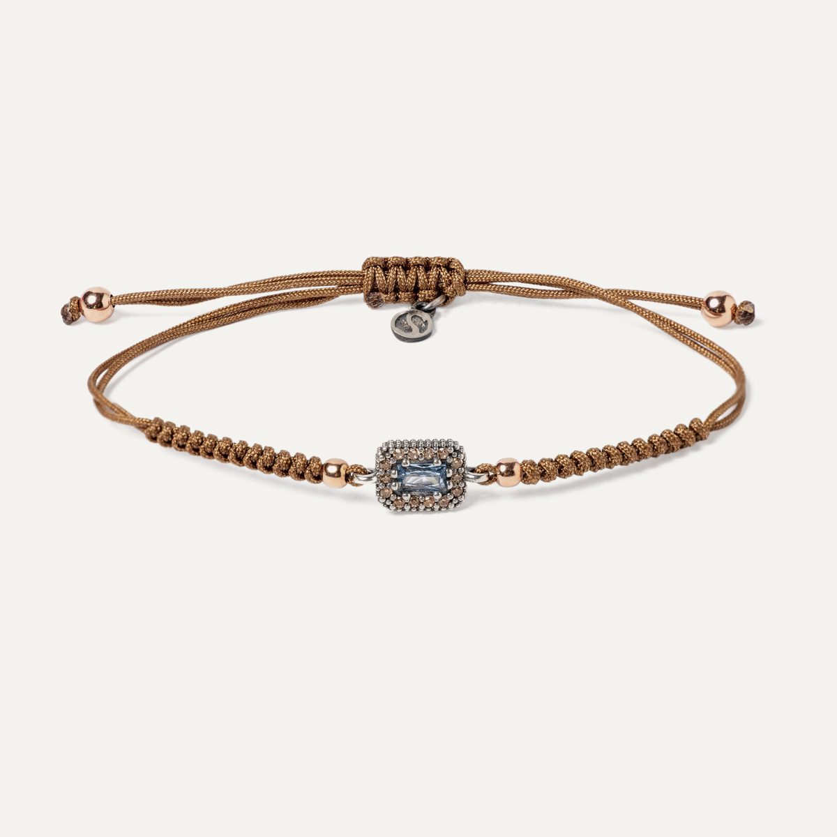 Bracelet en argent sterling en forme de médaille classique, 1,5 cm de long par 1 cm de large. Au centre, une zircone cubique aigue-marine de 1,5 mm, entourée d’une zircone cubique blanche de 1,25 mm.