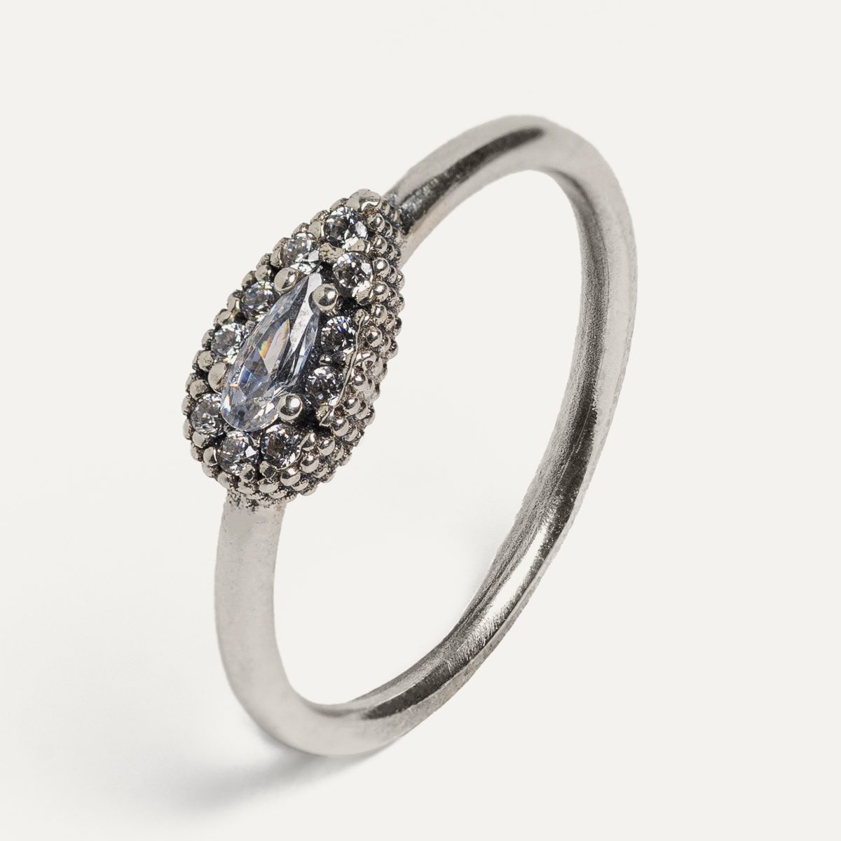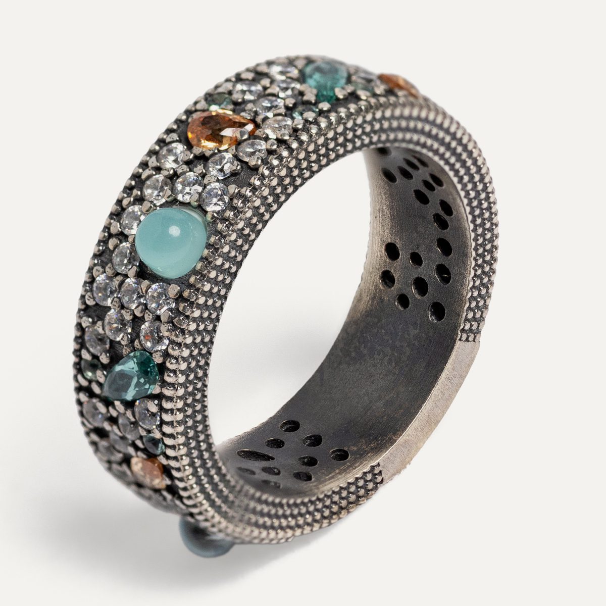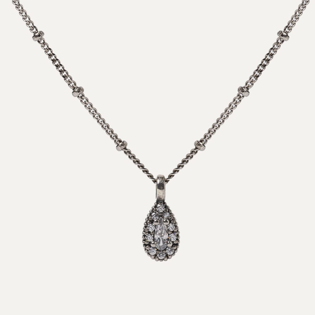 Bracelet en argent sterling en forme de médaille classique, 1,5 cm de long par 1 cm de large. Au centre, une zircone cubique aigue-marine de 1,5 mm, entourée d’une zircone cubique blanche de 1,25 mm.