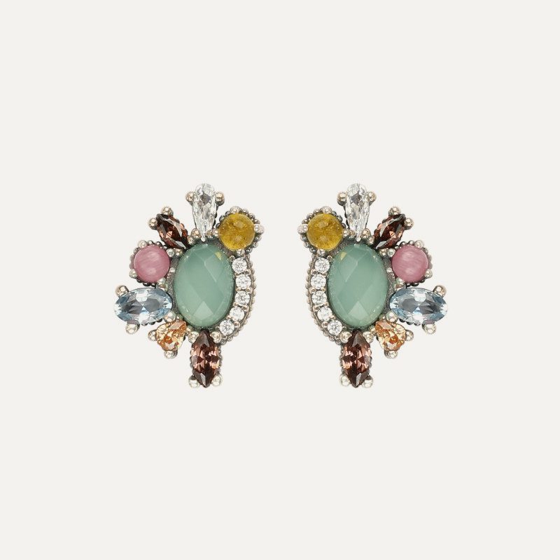 Un bracelet en argent d’inspiration florale pour un look bohème, pour une collection exclusive de bijoux Sunfield. La pièce maîtresse de ce bijou est un cabochon ovale de calcédoine facetté, accompagné de deux cabochons lisses de citrine et de calcédoine qui font de ce bracelet une pièce vivante et colorée.