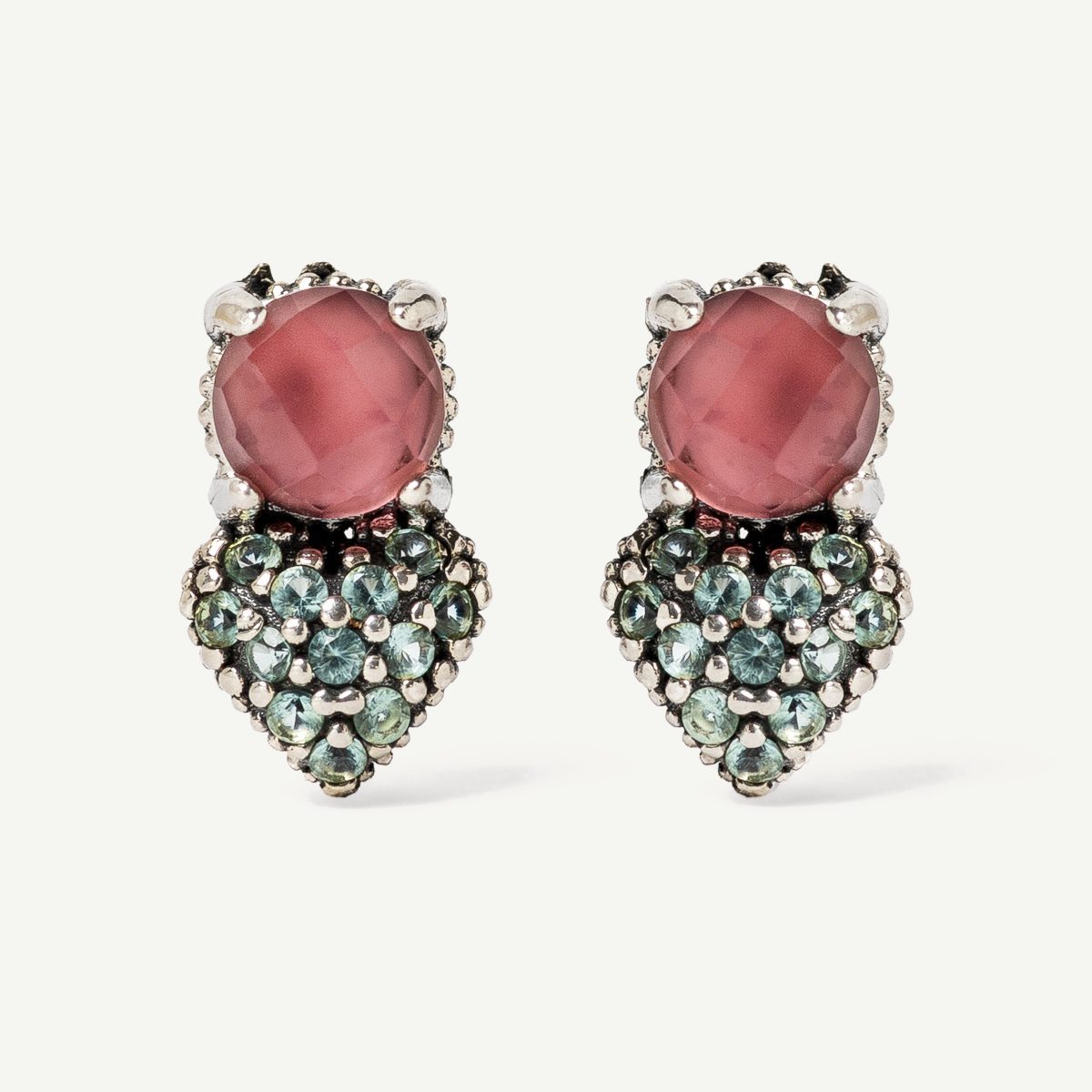 Bracelet de style classique en argent 925 et zircons. Il est fabriqué à la main sur une base en argent sterling à la finition antique, avec des zircons de différentes tailles sertis à la main. Il combine des tons vert menthe avec du blanc, du vin et du miel pour lui donner un ton doux et frais. Le bord grainé caractéristique de Sunfield témoigne de l’attention portée aux détails par nos maîtres joailliers.