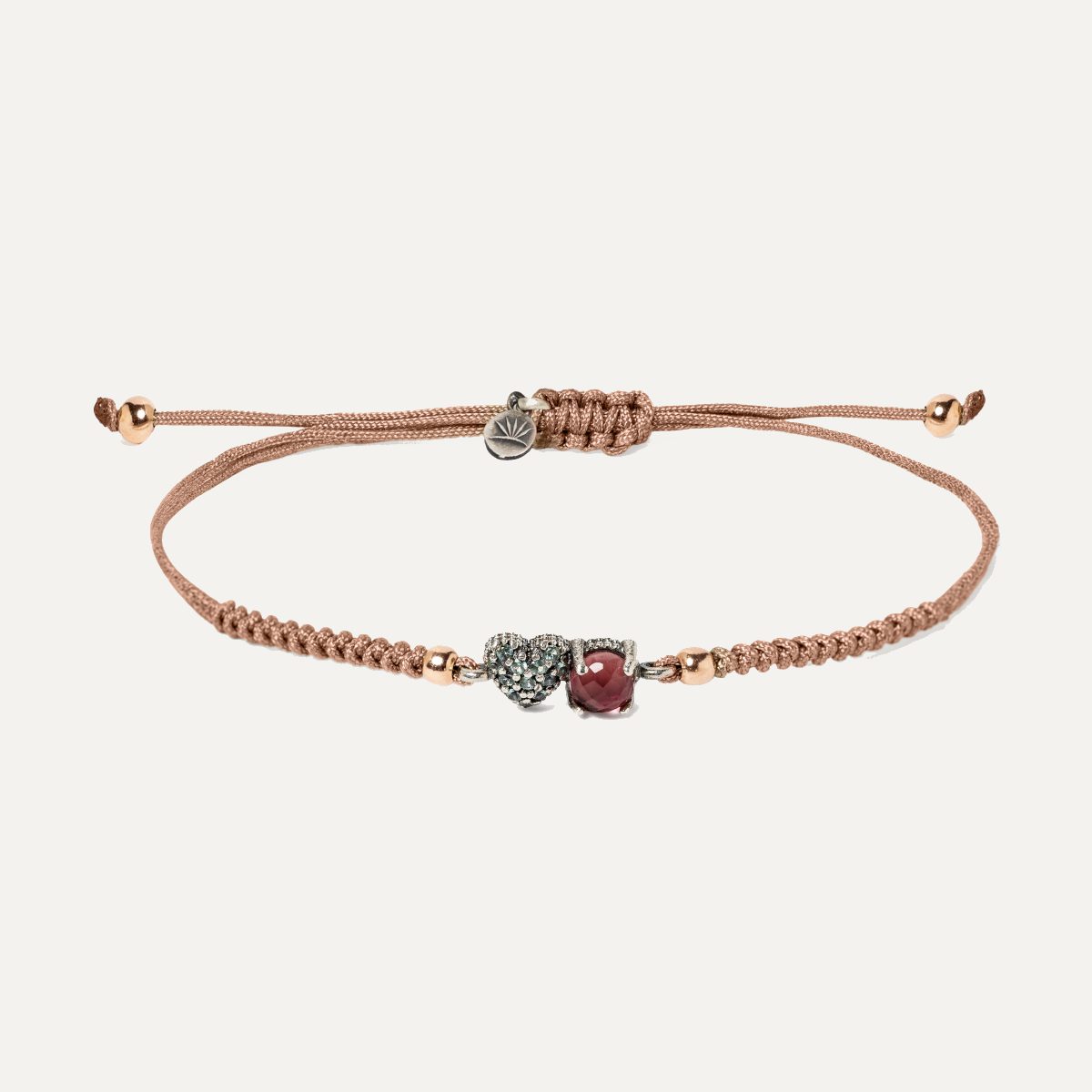 Les perles sont en argent sterling plaqué or rose 24kt. Il mesure au total 3,5 cm de long sur 2,3 cm de large, et est accompagné d’un macramé en nylon ajustable pour que vous puissiez le mettre et l’enlever facilement.