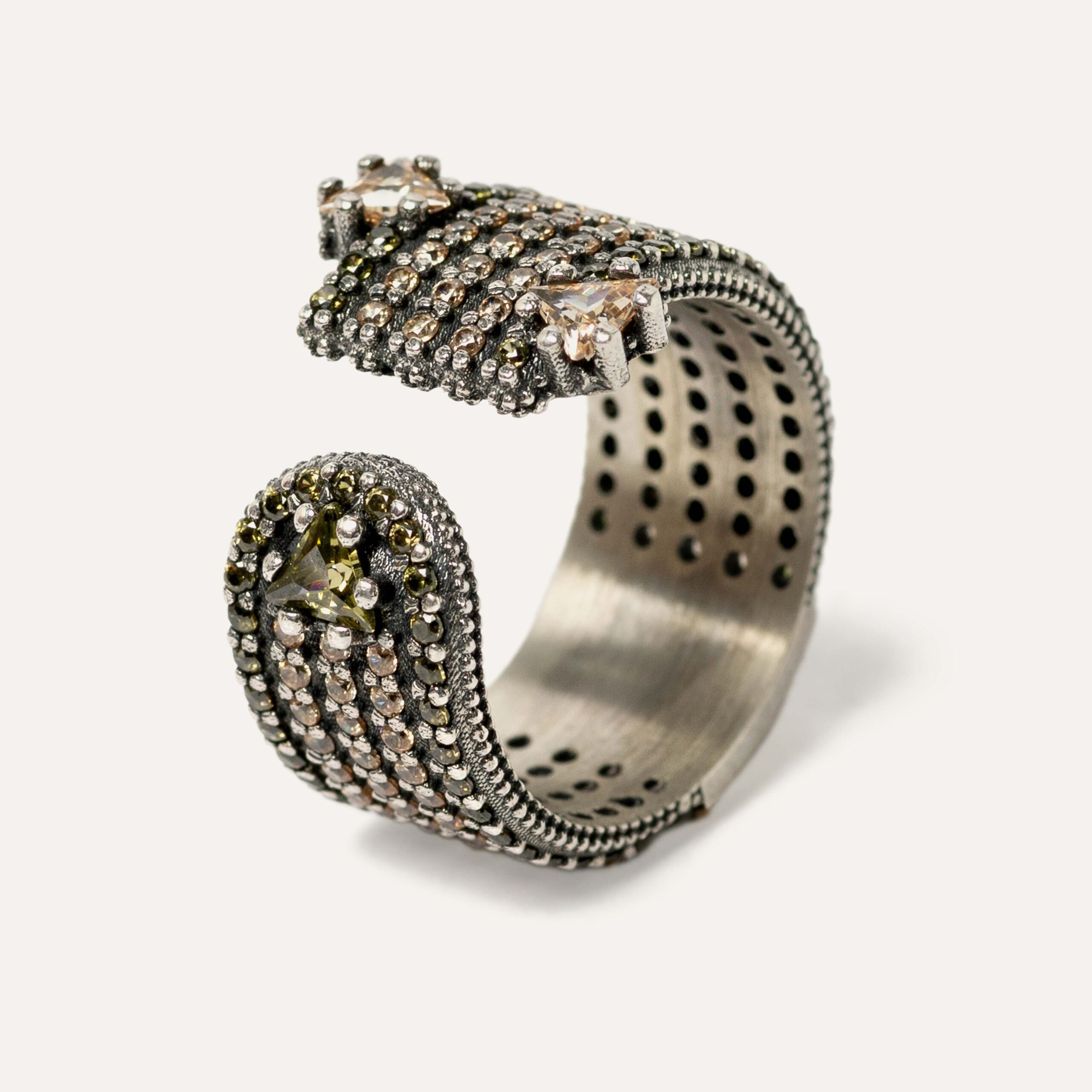 Impressionnant collier classique composé d’un pavé de zircons sertis à la main un par un sur de l’argent 925, avec deux finitions possibles : argent antique ou plaqué or rose 24kt. Une pièce exclusive, un bijou élégant et indémodable.
