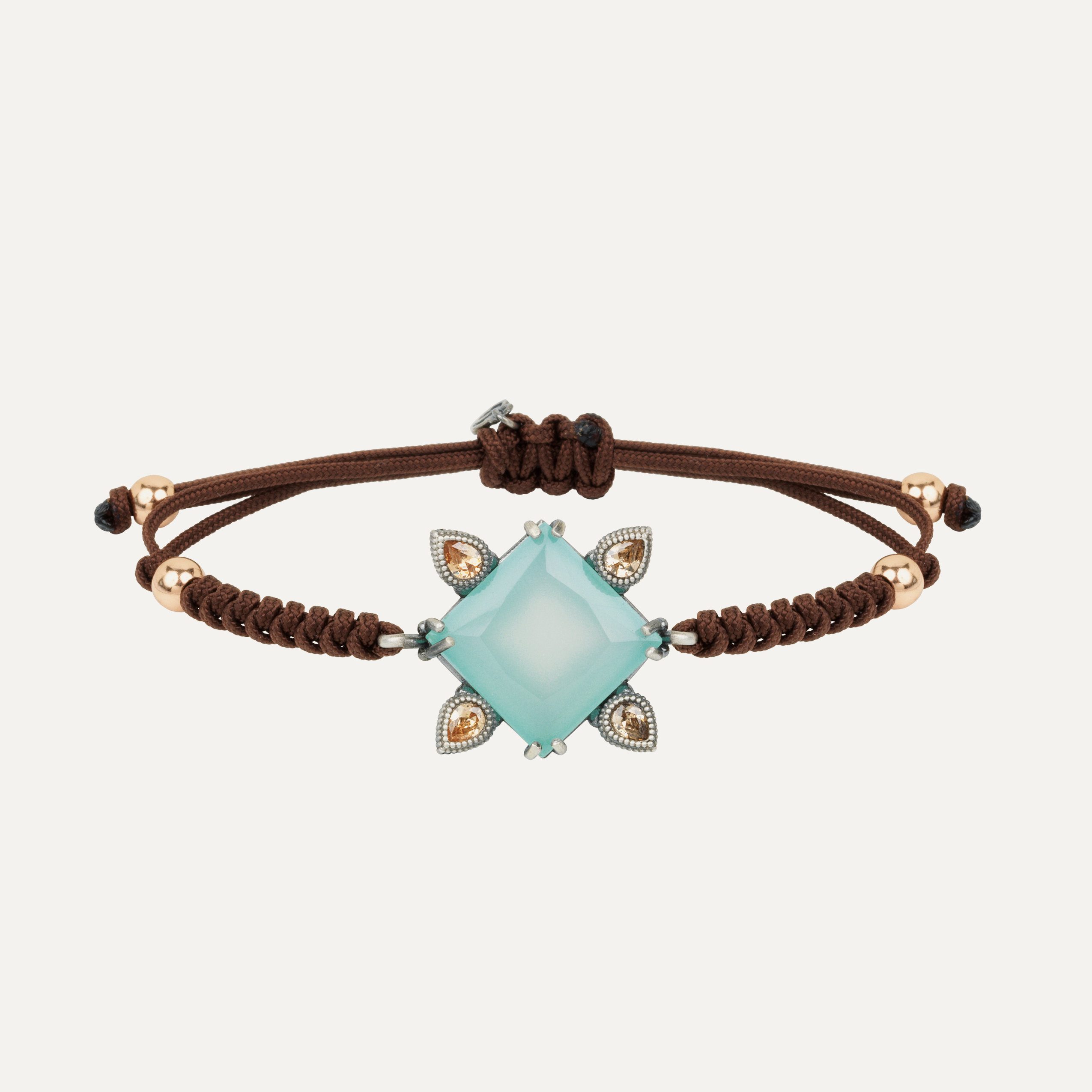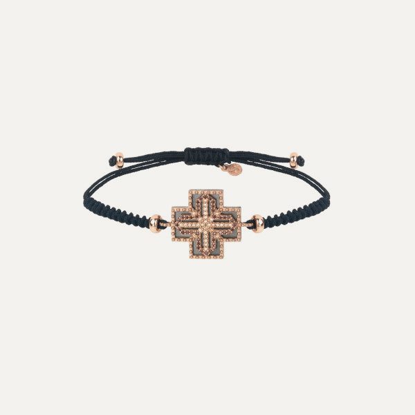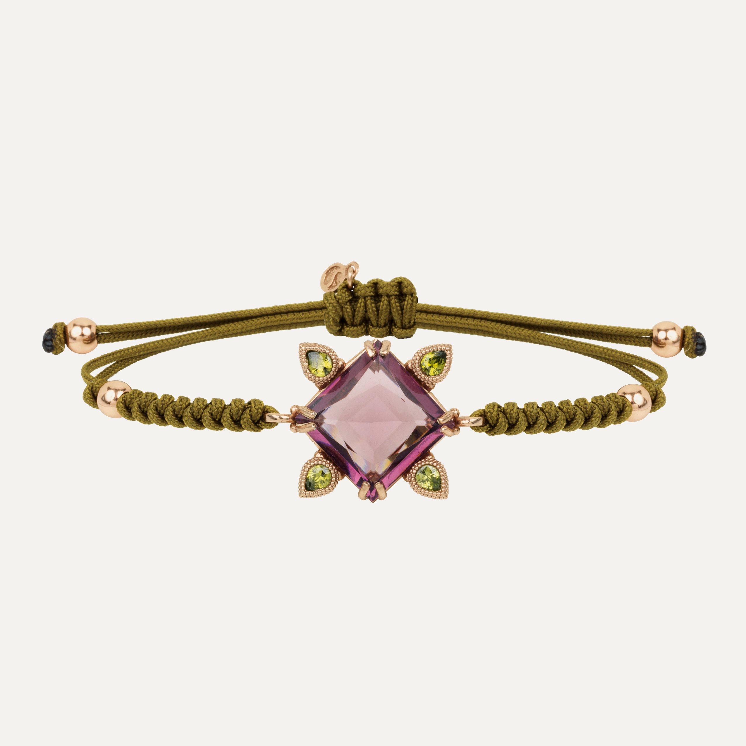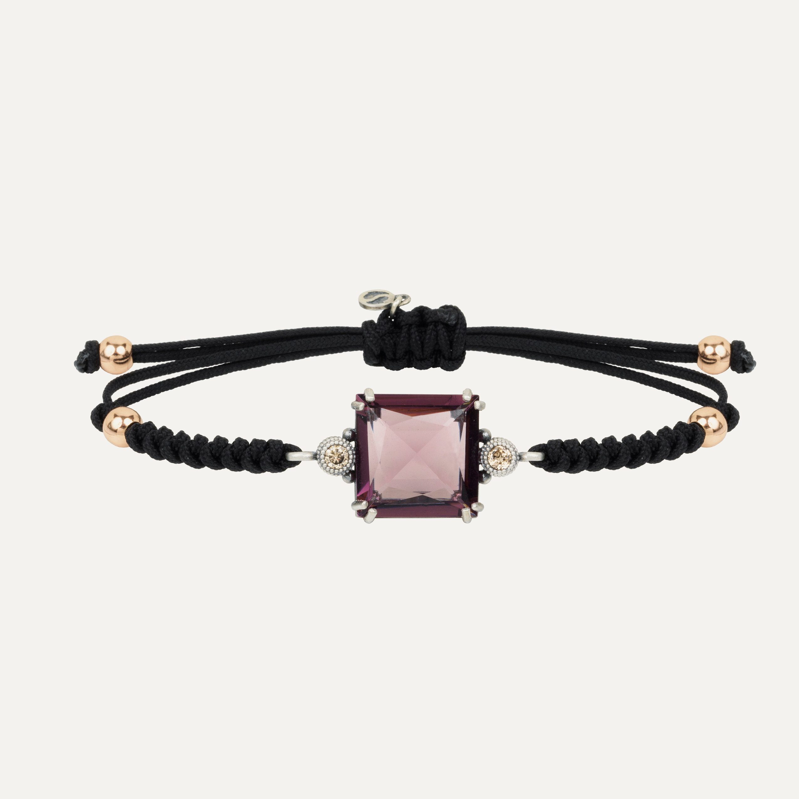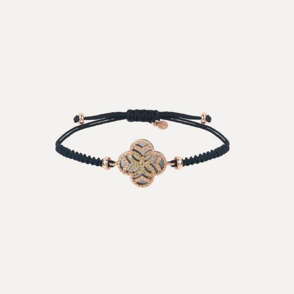 Bracelet en argent 925 avec placage en or rose 24kt, zircons et nylon.