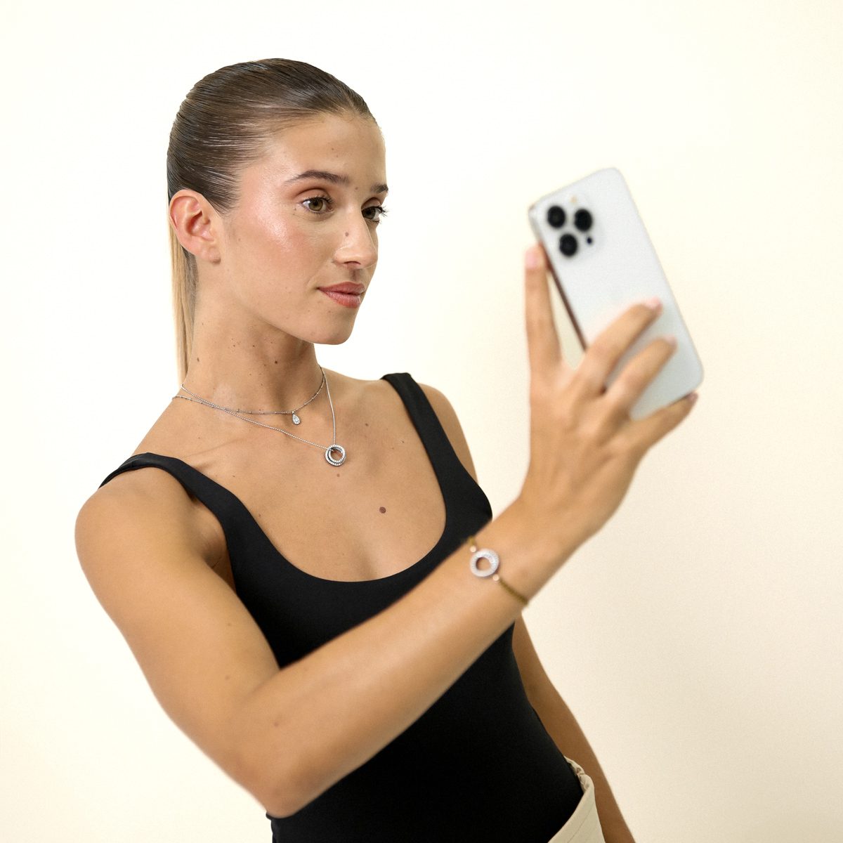 Chaque pendentif est orné de zircons, créant un effet de scintillement qui capte la lumière de manière spectaculaire. Disponible en différentes couleurs et avec deux finitions exclusives : argent 925 plaqué or rose 24kt pour une touche chaleureuse et féminine, ou argent antique, idéal pour un style plus classique et élégant.