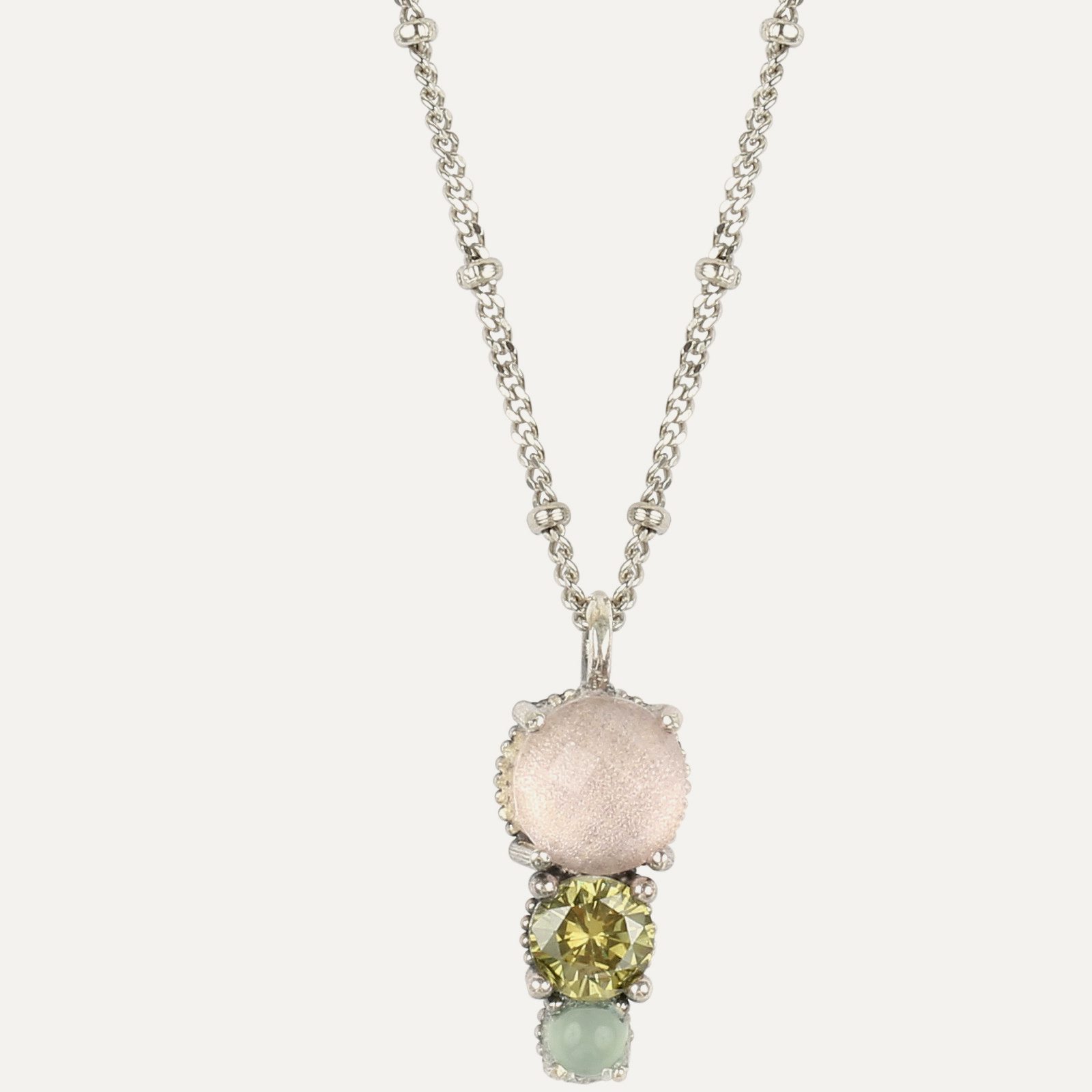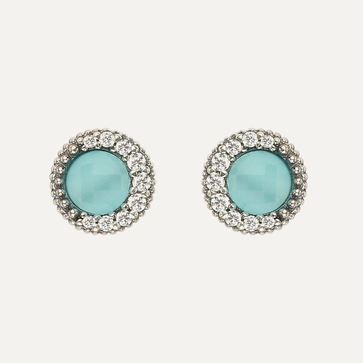 Elles sont composées d’un zircon ovale de 5×3 mm, d’un cabochon de 5 mm et d’un cabochon lisse de 5 mm, maintenus par un anneau en argent à la finition antique, dans un choix de deux combinaisons de couleurs. La longueur totale de ces petites boucles d’oreilles avec mouvement est de 1,5 cm.