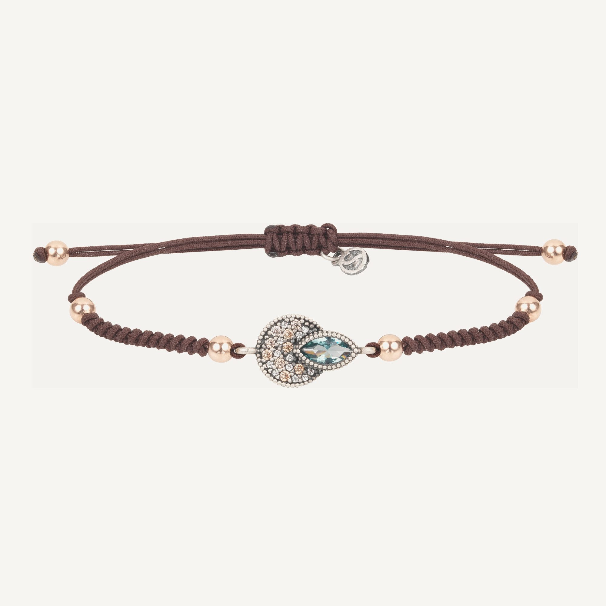 Il est orné d’un zircon cubique de taille marquise à facettes vert menthe. Il est accompagné d’une chaîne en argent sterling plaqué or rose 24kt de 42 cm de long.