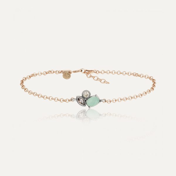 Julietta, un nom qui inspire le romantisme et la beauté, tout comme les pendentifs Julietta de la collection Giselle, beaux, élégants, romantiques et dotés de la touche unique de Sunfield. Ce pendentif en argent sterling 925 avec une finition antique est orné d’un cabochon ovale facetté de calcédoine de 7 x 5 mm, d’un zircon champagne taillé en brillant et d’un zircon marron taillé en marquise. Il est suspendu à une chaîne en argent plaqué or rose 18k de 42 cm de long.