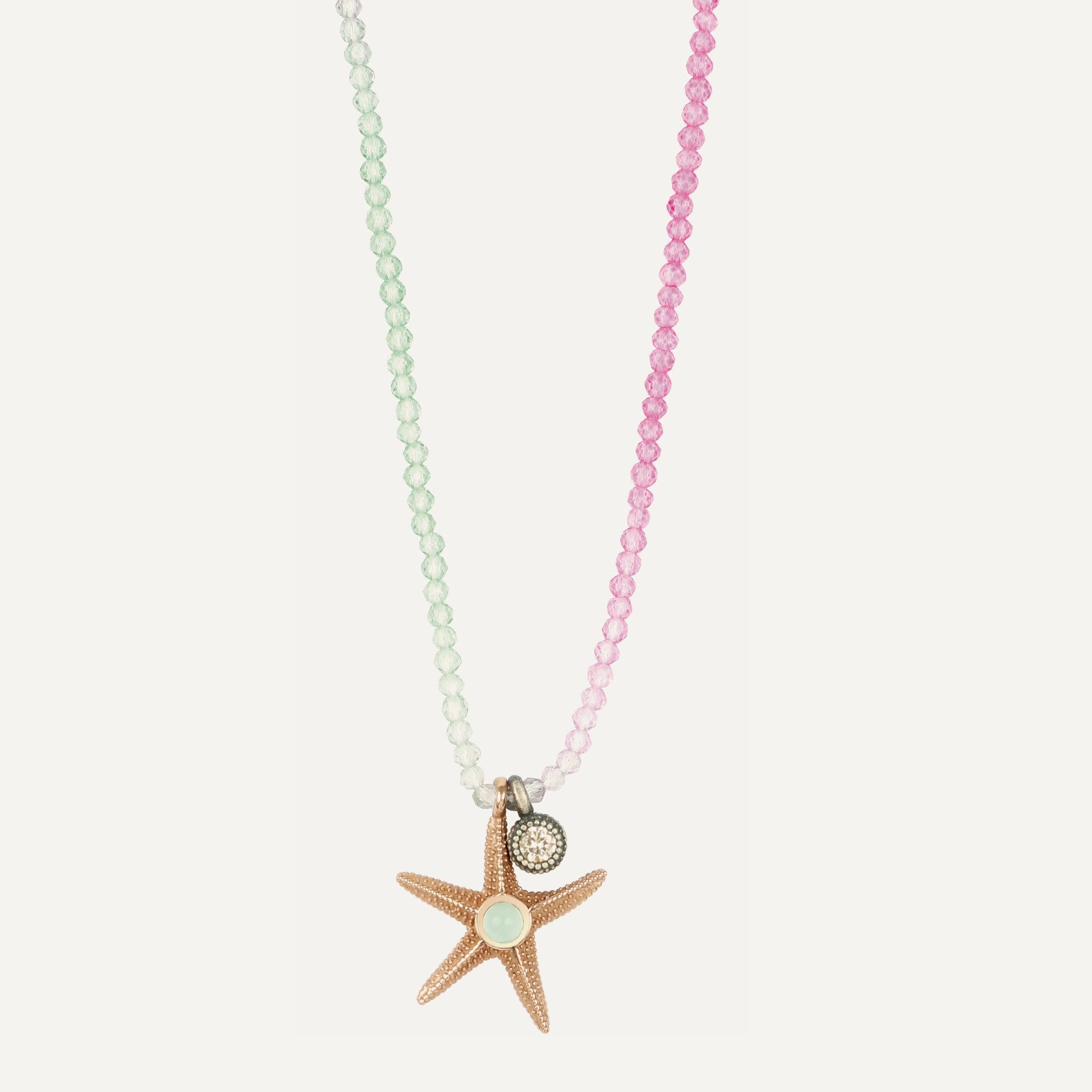 | Couleur | Péridot vert, Bleu aigue-marine, Tourmaline rose, Quartz rose, Cava |