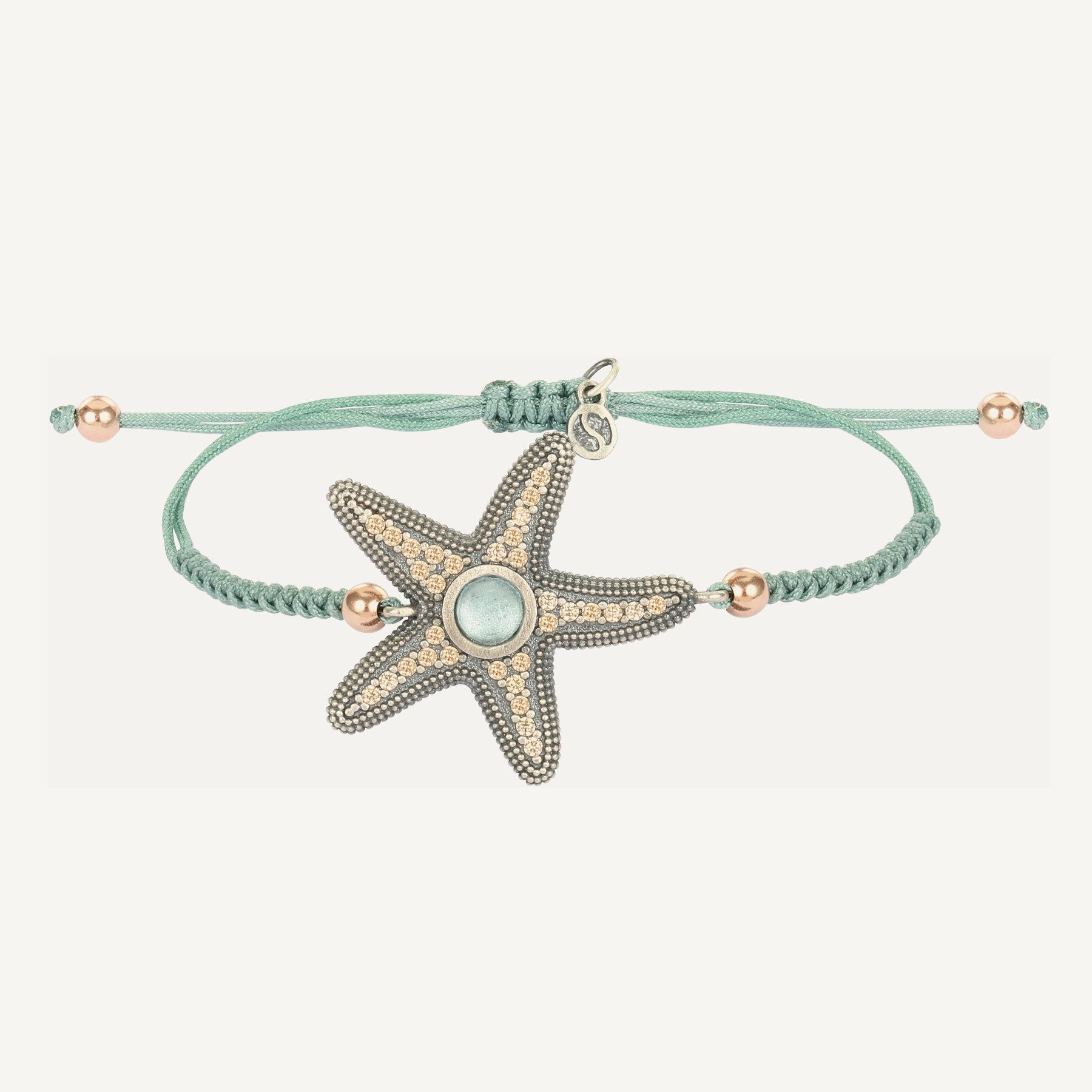 Pendentif estival en forme d’étoile de mer en argent 925, de 2,8 cm de large et 3 cm de haut.