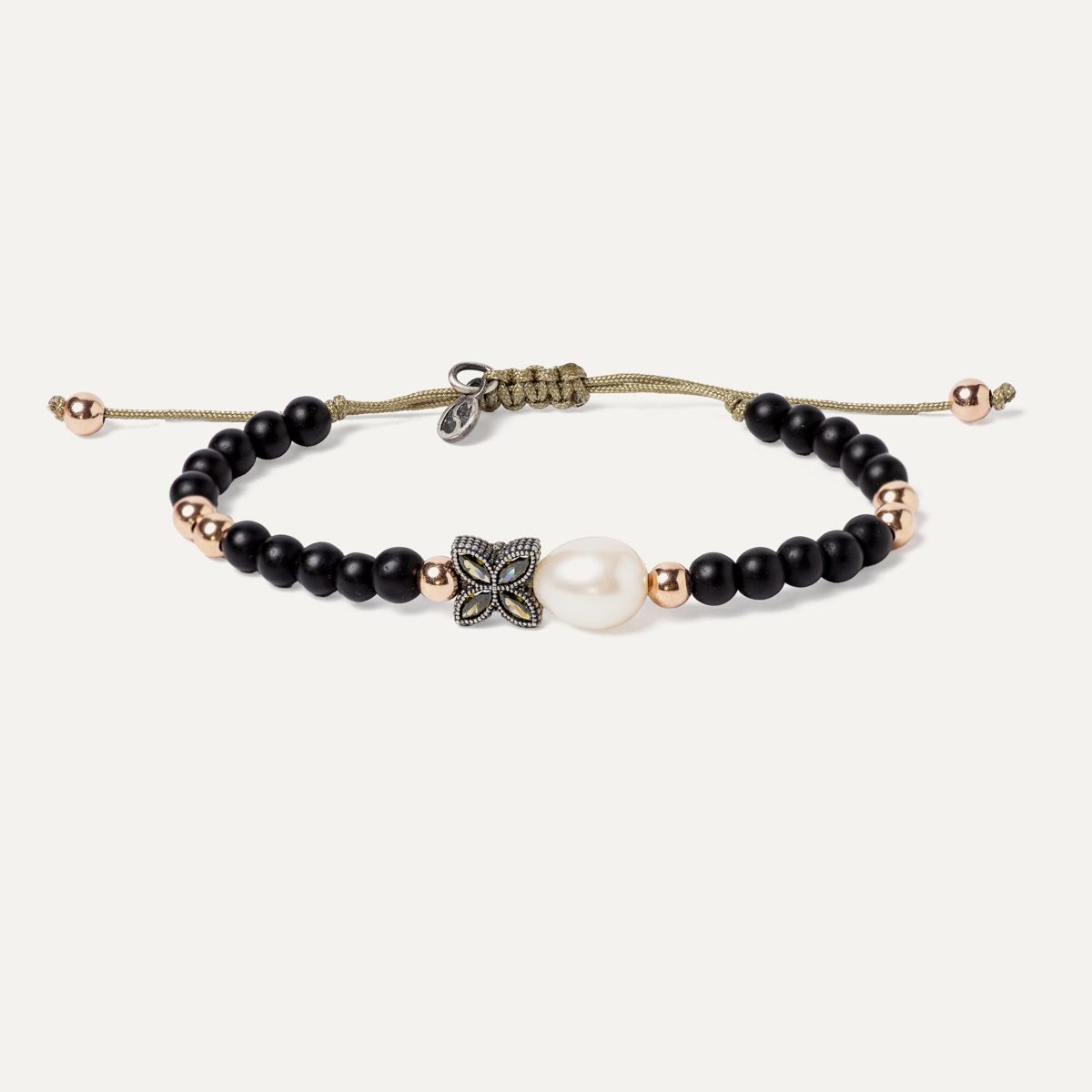 Il existe trois combinaisons possibles : fait main en argent antique et zircon de couleur cava, avec un cabochon central d’aigue-marine facetté de 5 mm ; zircon bleu aigue-marine avec un cabochon central de quartz rose et finition en argent antique ; ou plaqué or rose 24kt avec zircon vert péridot et un cabochon central de tourmaline rose.