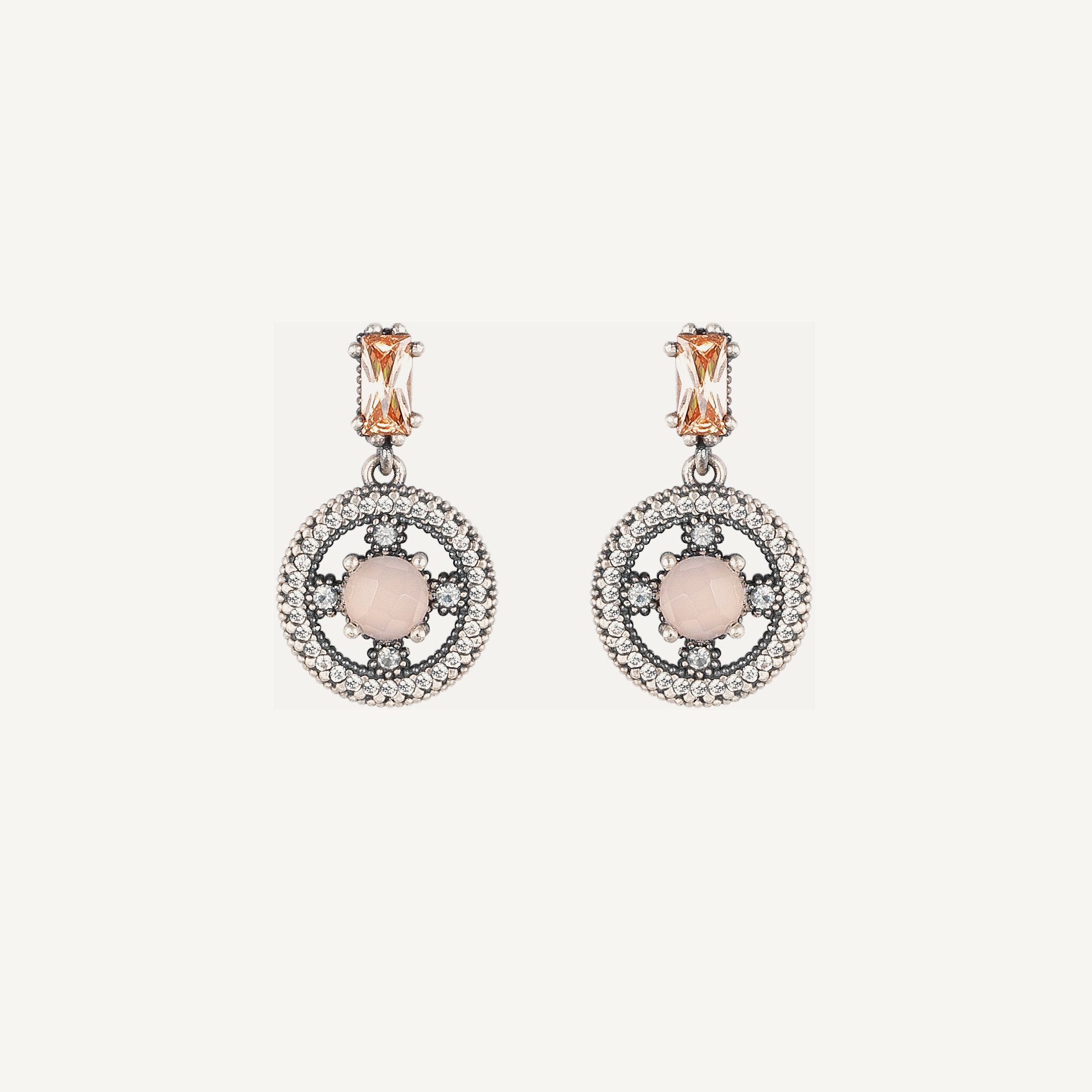 Pendentif en argent 925, calcédoine, quartz rose et zircon.
