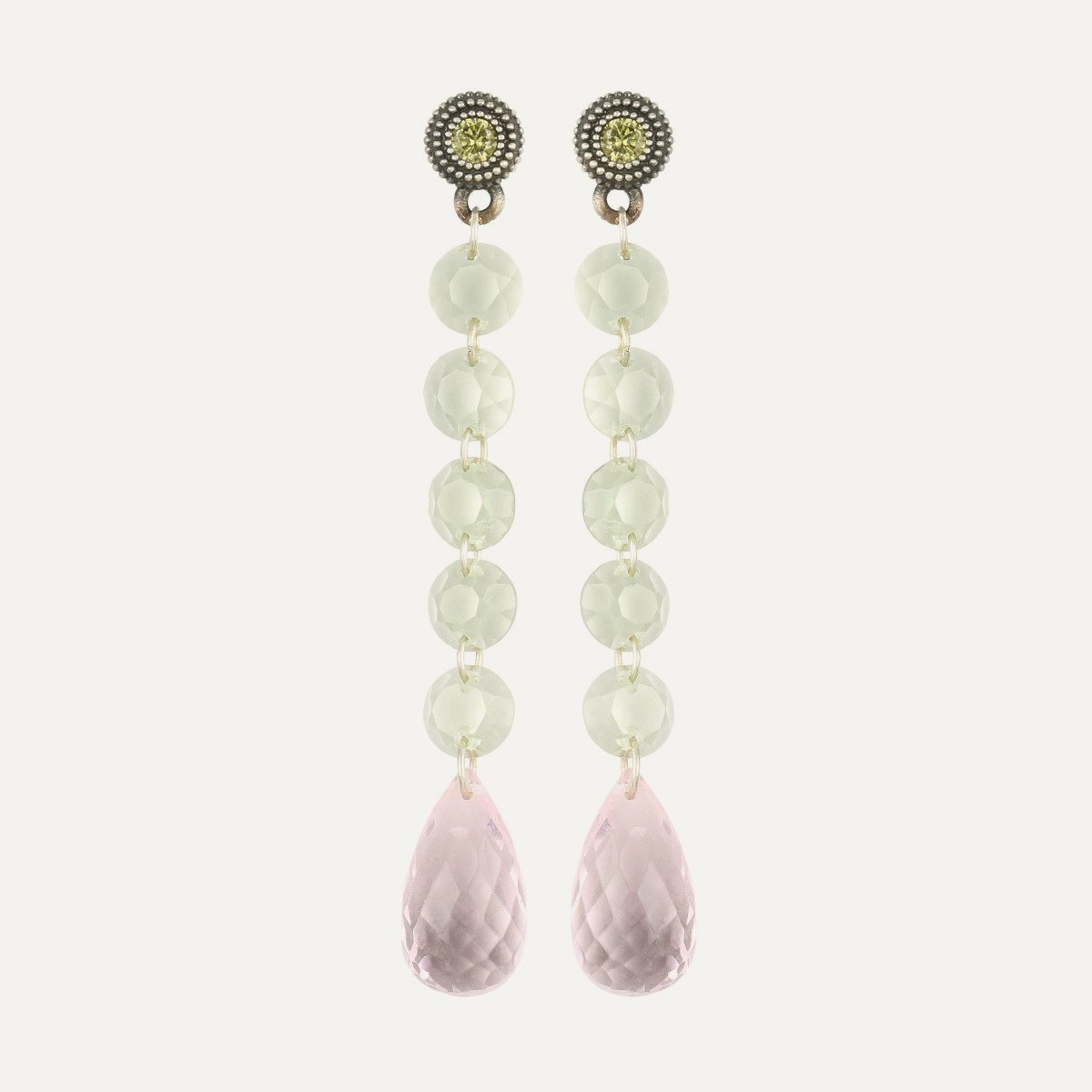 Pendentif en argent 925 avec placage en or rose 24kt, calcédoine verte, quartz rose et zircone.