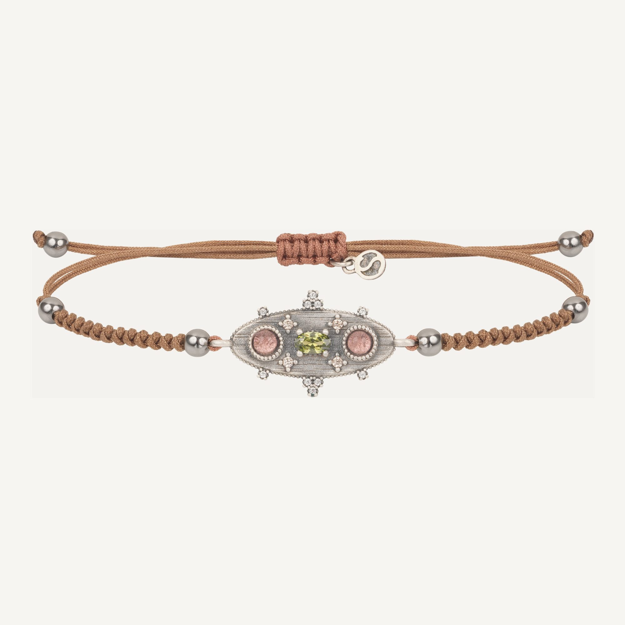 Pendentif en argent 925 avec finition antique, calcédoine, tourmaline rose et zircone.