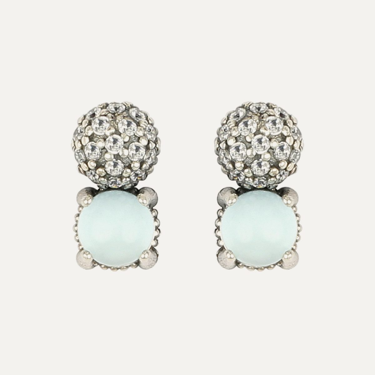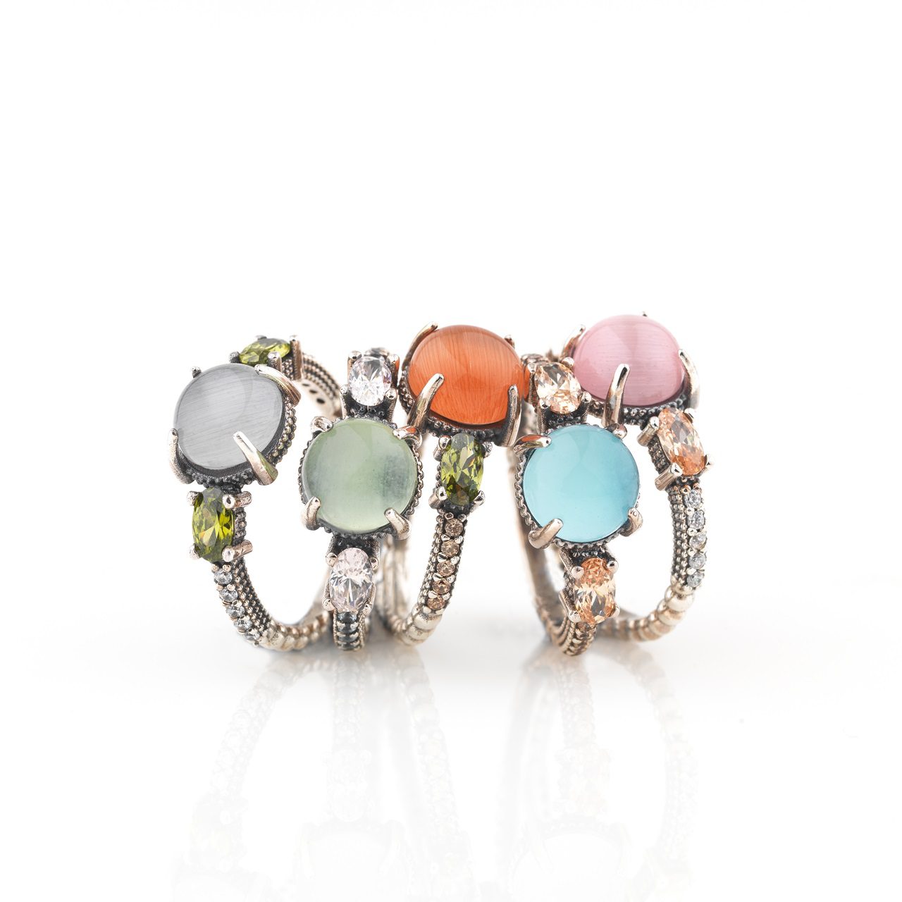 Ce petit pendentif tricolore de 1,5 cm présente trois des pierres les plus intéressantes pour leurs propriétés et leur signification : la calcédoine, associée à la maternité et à la fertilité, la tourmaline rose, aux propriétés énergisantes, et la citrine, qui attire la positivité et renforce l’estime de soi.