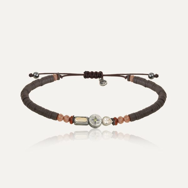 Pendentif en argent 925, zircon, perles de verre, hématite, caoutchouc et nylon.