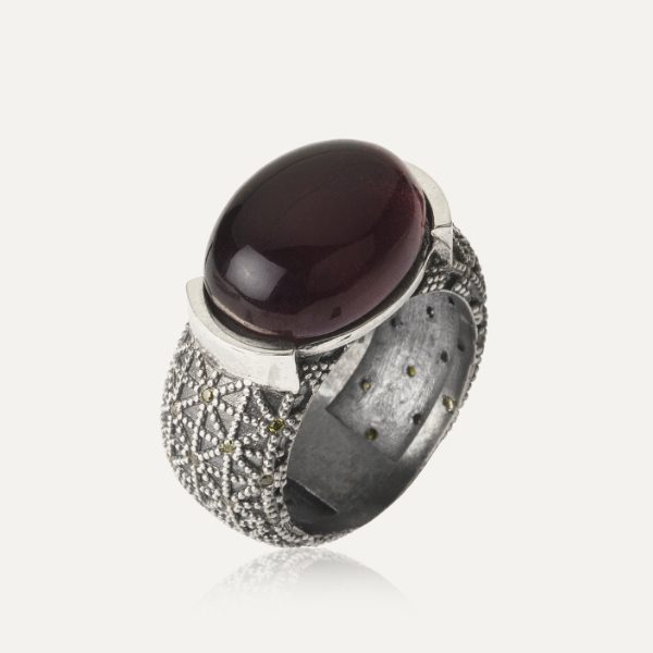 Bracelet en argent 925 avec finition antique, calcédoine, quartz fumé, zircone et nylon.
