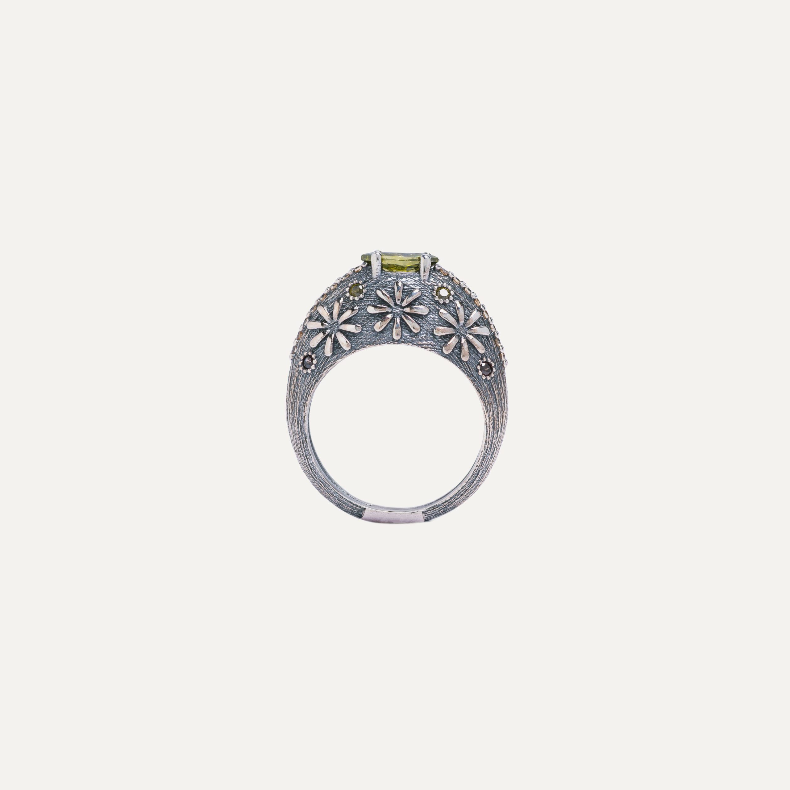 Bague en argent 925 avec quartz et zircon colorés, dans un choix de trois combinaisons de couleurs.