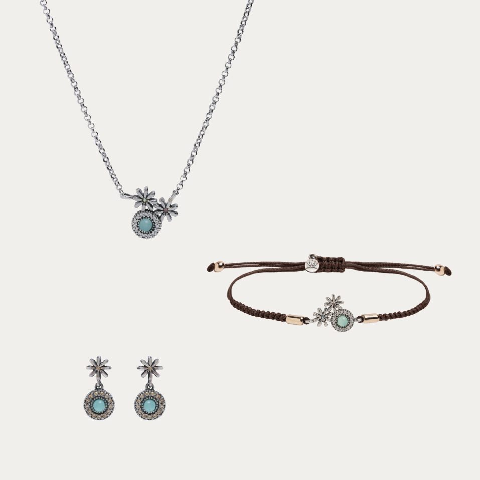 Ensemble composé d'une bague, d'un pendentif et d'un bracelet en argent 925, quartz hydrothermal et zircone, dans un choix de trois combinaisons.