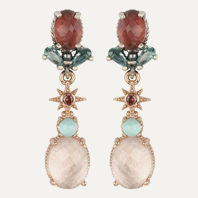 Boucles d'oreilles en argent 925 avec placage en or rose 24kt, quartz et zircon. Trois combinaisons différentes au choix.