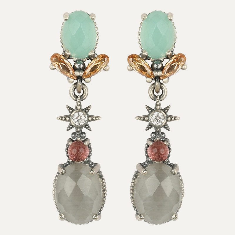 Boucles d'oreilles en argent 925 avec quartz et zircon.