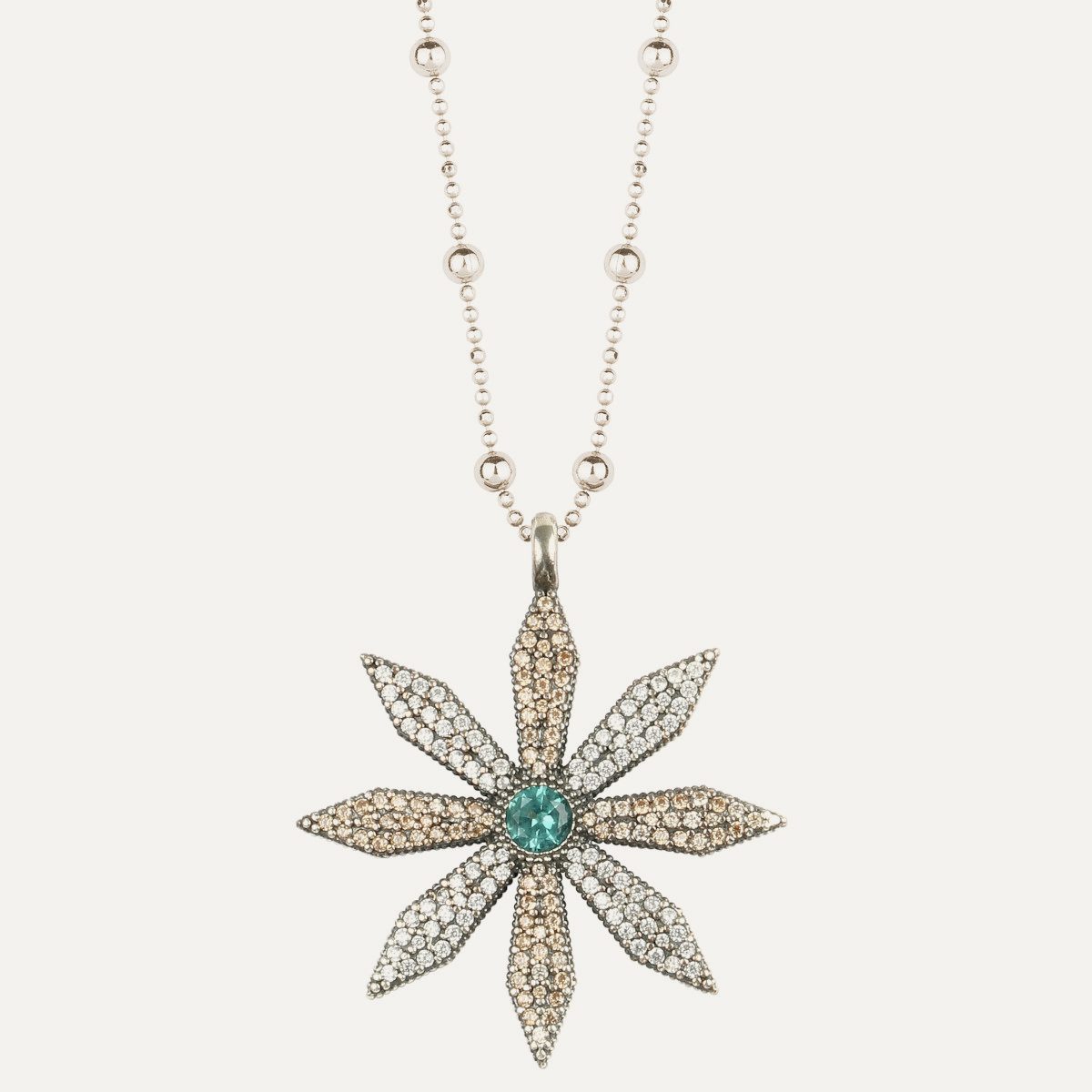 Pendentif en argent 925, quartz aigue-marine et zircon.