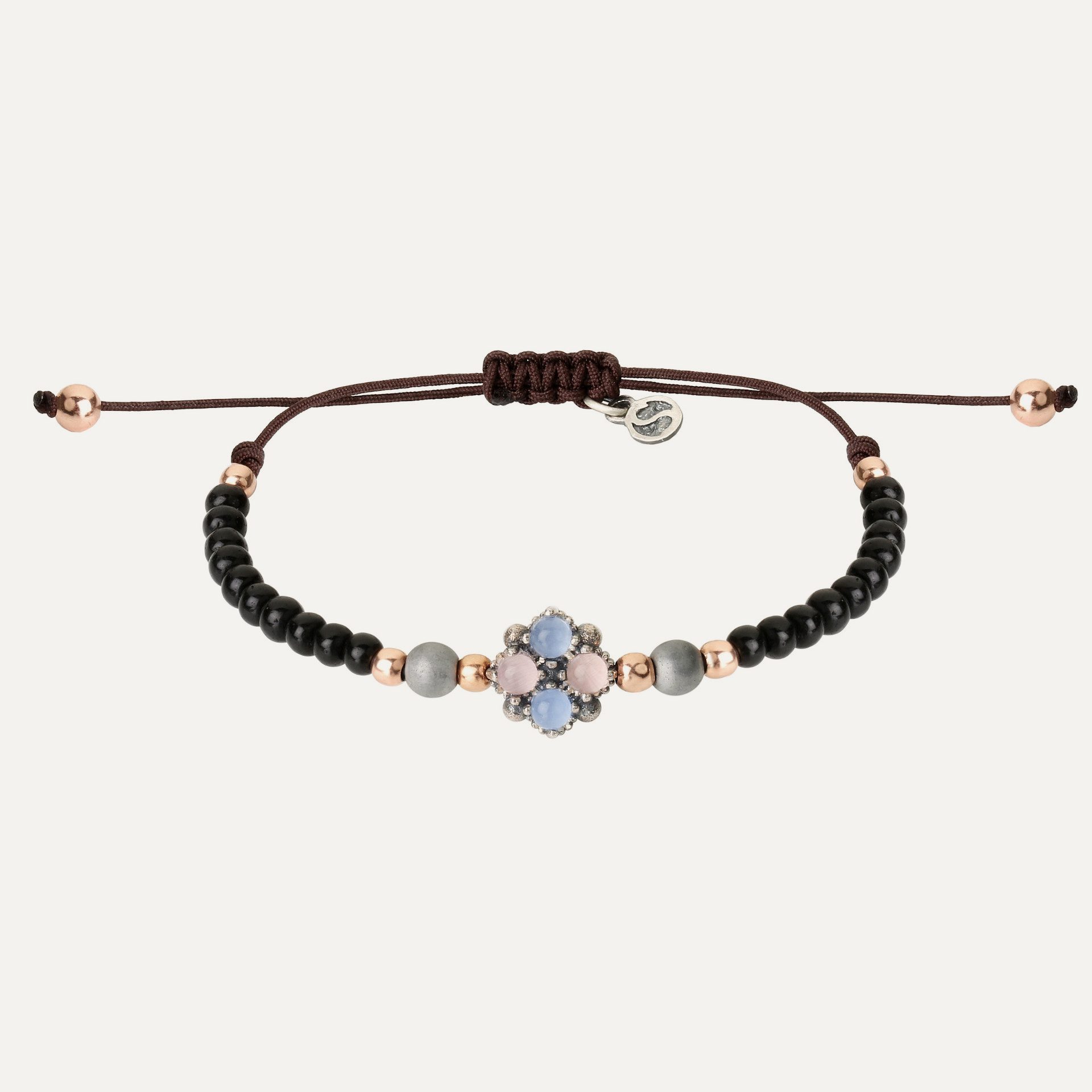 Bracelet en argent 925, quartz, agates, hématite, zircons et nylon.